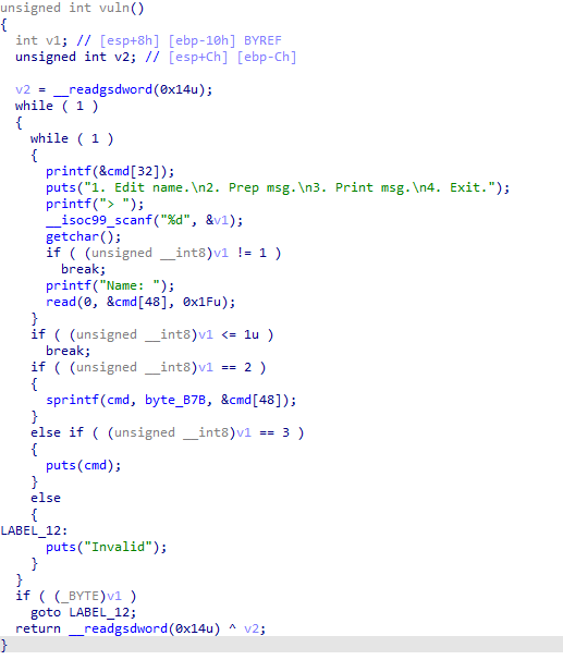 이후에 prep msg를 통해 cmd[32]를 덮어서 fsb를 터트릴 수 있지만 매우 제한적이다