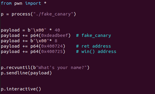 주목적이 풀이가 아니기 때문에 빠르게 보고 넘어가면 gets를 통해 bof가 발생하고  fake-canary는 static(0 xdeadbeef)으로 rbp-0x8과 비교하여 overflow 여부를 판단하기 때문에 ret값까지 데이터를 넣다가 rbp-0x8에서 fake-canary값을 넣어주고