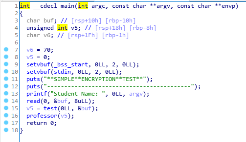 IDA를 통해 확인해보면 test함수의 반환 값을 professor함수의 매개변수로 전달됩니다.