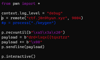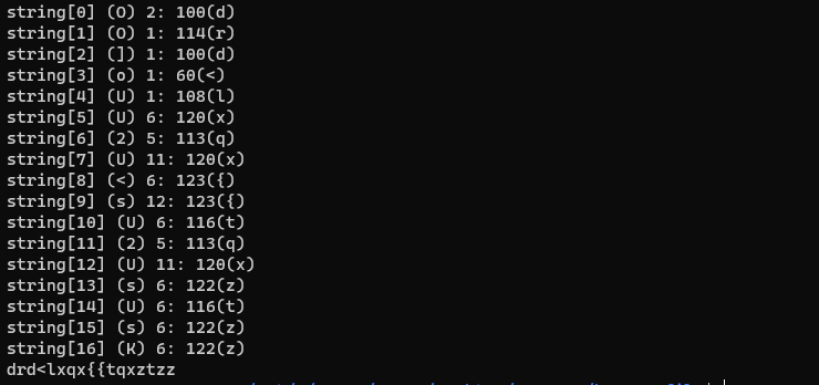 그래서 해당 코드를 돌리면 "drd<lxqx{{tqxztzz"라는 문자열을 얻게 됩니다