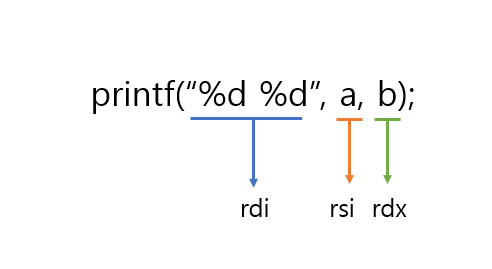 x64에서는 rdi -> rsi -> rdx -> rcx -> r8 -> r9 -> stack 순으로 인자가 저장됩니다