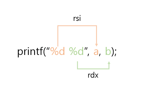 위의 그림을 참고해서 생각해보면 rdi레지스터에 서식 문자를 지정하여 주고