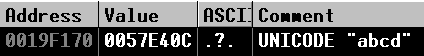 그리고 읽어온 문자열( abcd )을 0019F170 주소에 저장해 놓을 것을 확인할 수 있습니다.