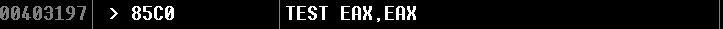 "Congratulations" 문자열이 있는 00403372 주소에서 위에 있는 코드들을 보게 되면 조건 분기 명령어인 JE 명령어가 바로 위에 있는 TEST AX AX 코드의 수행 결과를 통해 점프를 할지 말지를 결정합니다.