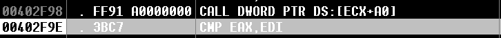 함수를 [F7]을 통해 디버깅을 하다 보면 위와 같은 코드를 AX와 EBX + 8 값을 비교하게 됩니다.